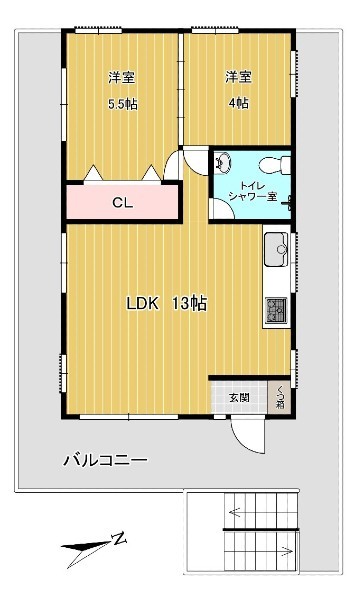 2LDK(洋 5.5・4 / LDK 13)